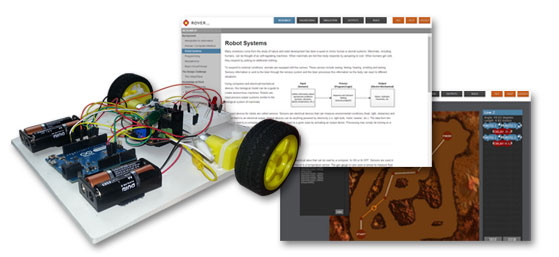 A standards-based, cloud-based virtual modeling STEM application that guides students through an engaging, realistic robotic rover development process capped by a very cool virtual obstacle course. Then, students can physically assemble and program their actual rovers.