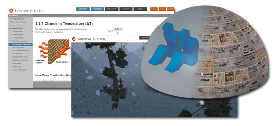 A standards-based, cloud-based virtual modeling STEM application that guides students through an engaging, realistic emergency survival shelter process capped by a very cool virtual blizzard. Then, students can physically assemble their scale model shelters.