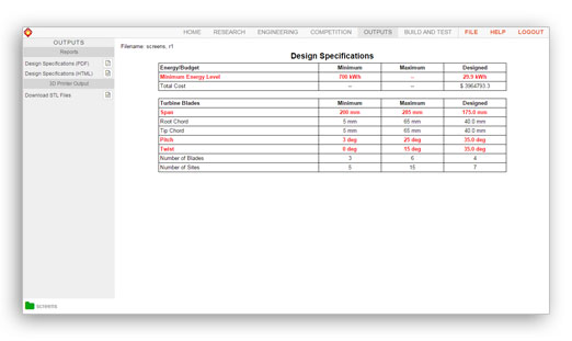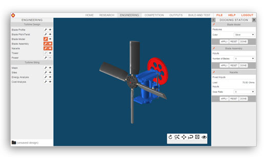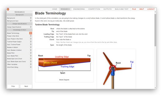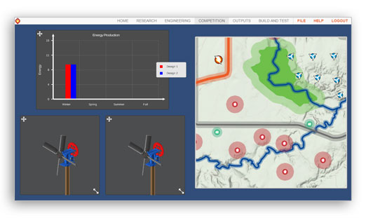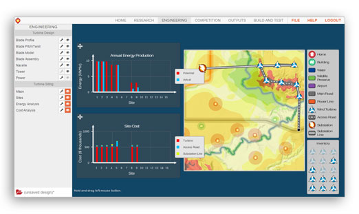 A standards-based, cloud-based virtual modeling STEM application that guides students through an engaging, realistic wind turbine development process capped by a very cool siting challenge and simulation -- all before building their actual wind turbines.