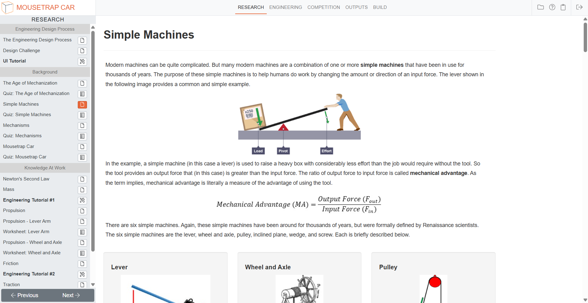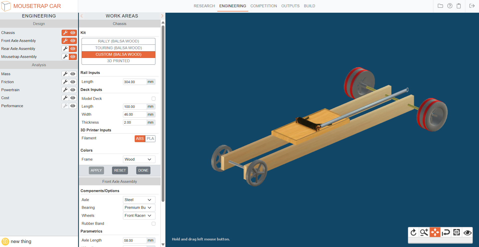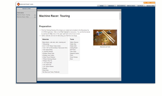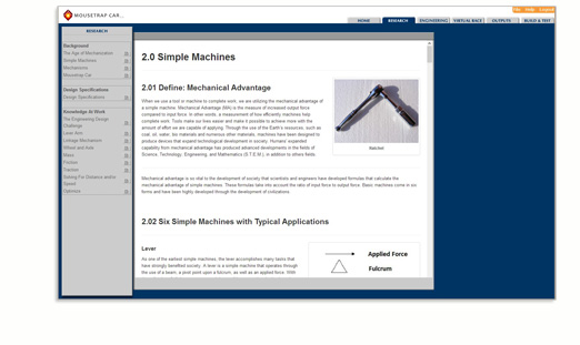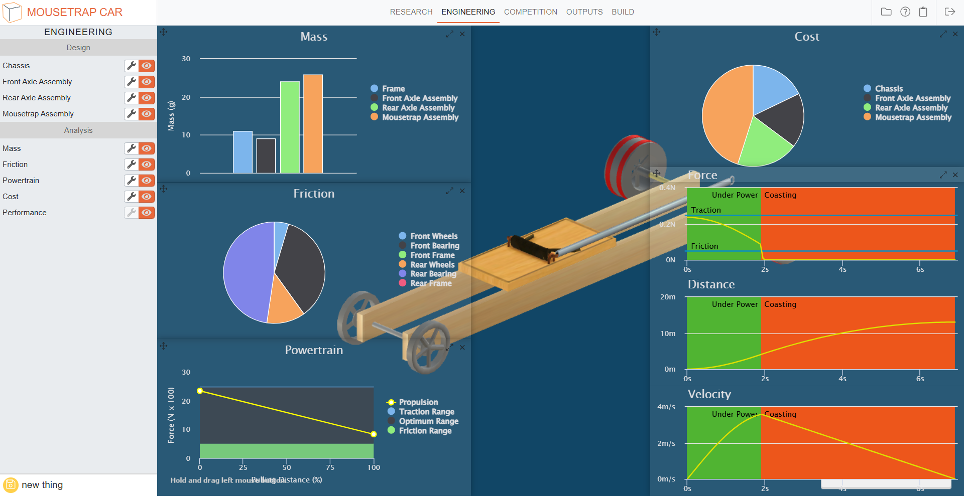 A standards-based, cloud-based virtual modeling STEM application that guides students through an engaging, realistic Mousetrap Car development process capped by a very cool Virtual Race -- all before building their actual racers.