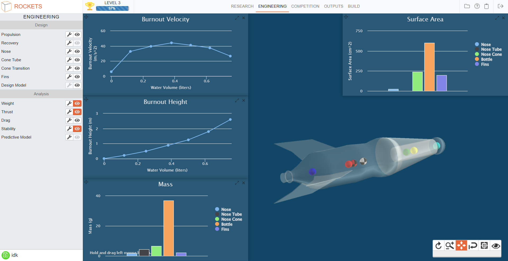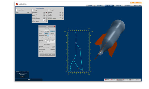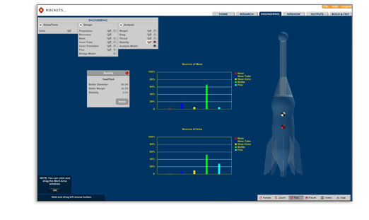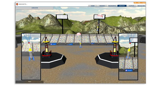 A standards-based, cloud-based virtual modeling STEM application that guides students through an engaging, realistic water rocket development process capped by a very cool Airshow -- all before building their actual water rockets.