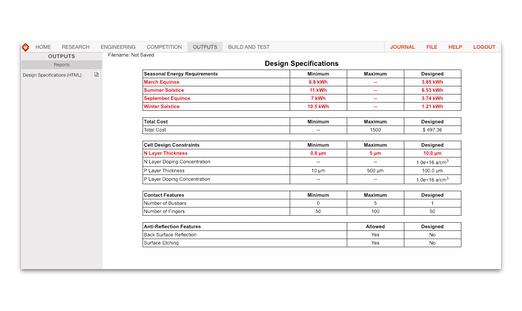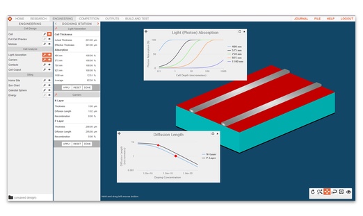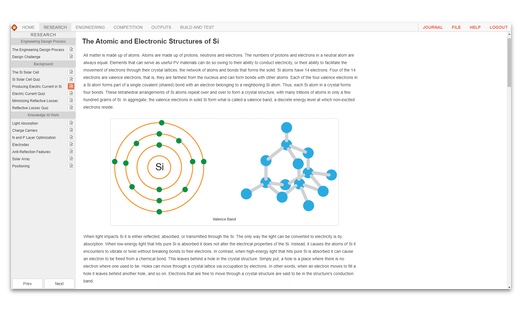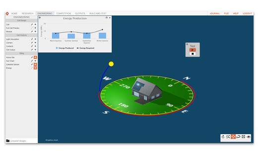A standards-based, cloud-based virtual modeling STEM application that guides students through an engaging, realistic solar cell development process capped by a very cool siting challenge and simulation -- all before building their actual solar cells.